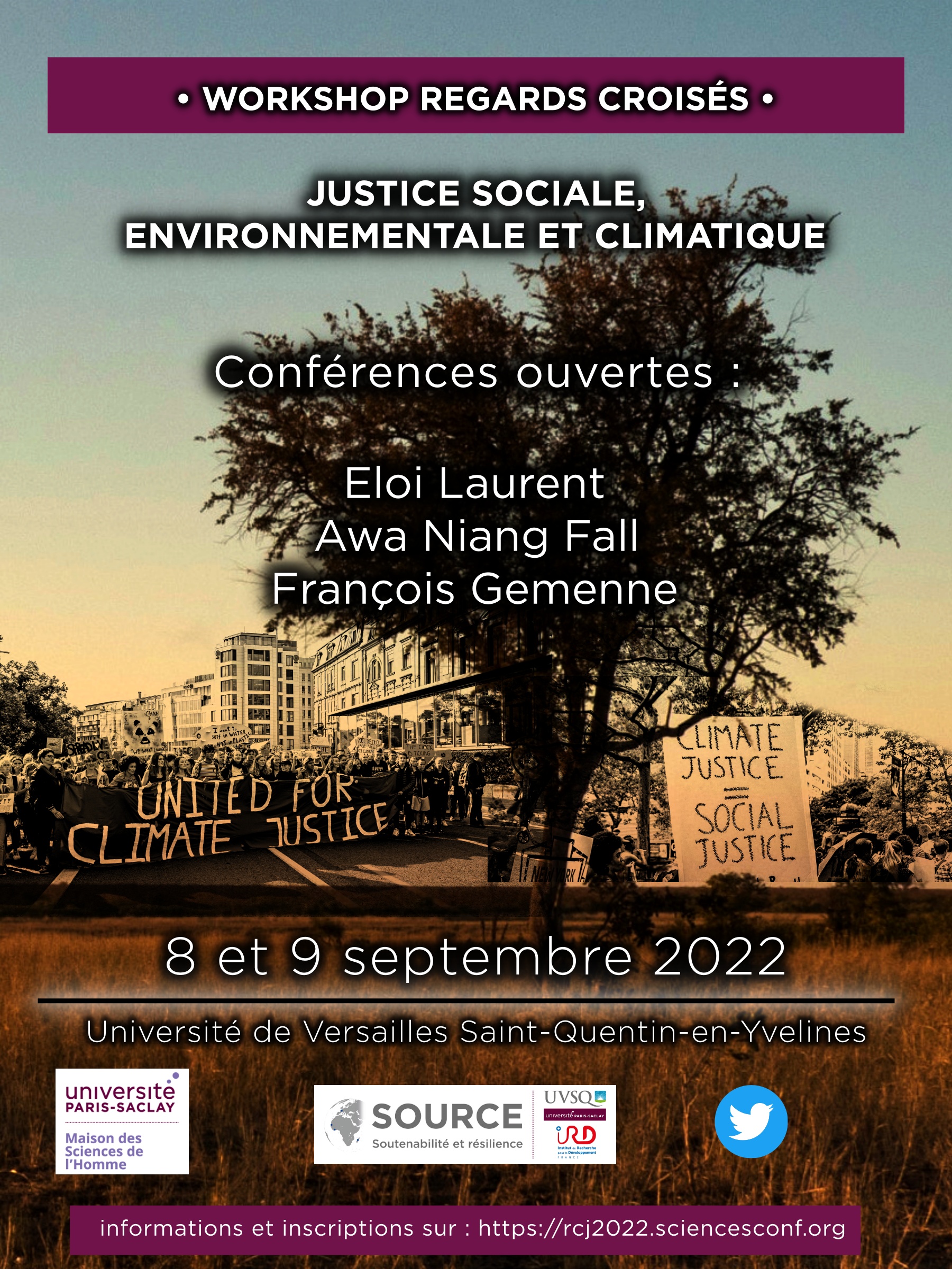 L'UMI SOURCE co-organise le Workshop Regards Croisés. "Justice sociale, environnementale et climatique", les 08 et 09 septembre 2022 à l'Université de Versailles Saint-Quentin en Yvelines, avec le soutien de la MSH Paris Saclay et de l'UFR des Sciences Sociales de l'UVSQ. Le projet est porté par Rima Hawi (UMI SOURCE), et Michel Bourban (Université de Twente). Le workshop propose de mettre en dialogue des chercheurs en sciences humaines provenant d’horizons disciplinaires variés et de différents pays afin de promouvoir la collaboration au sein du monde académique francophone. Les deux journées seront rythmées par des ateliers fermés et des conférences ouvertes au public.